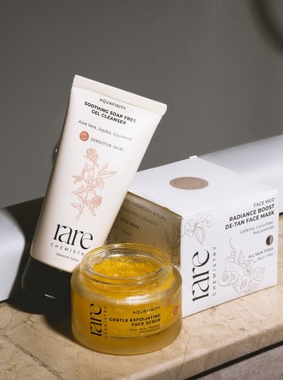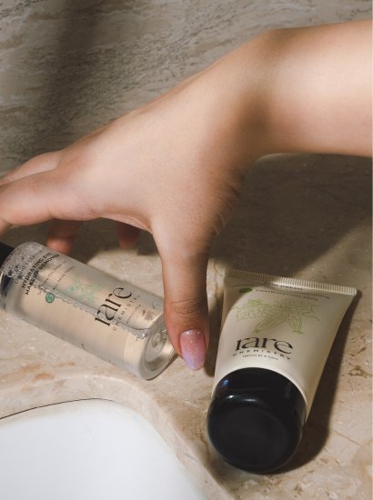 Try the balancing soap-free gel cleanser from Rare Chemistry to wash off daily dust without pulling too much from the skin. Then, add a hydration intense day cream to hold in that softness. This keeps things even and calm.