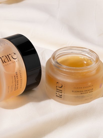 Try the blemish rescue night gel from Rare Chemistry for evening use, as it helps control excess and adds bounce. Follow with a silk skin moisturizer cream to keep things plump.