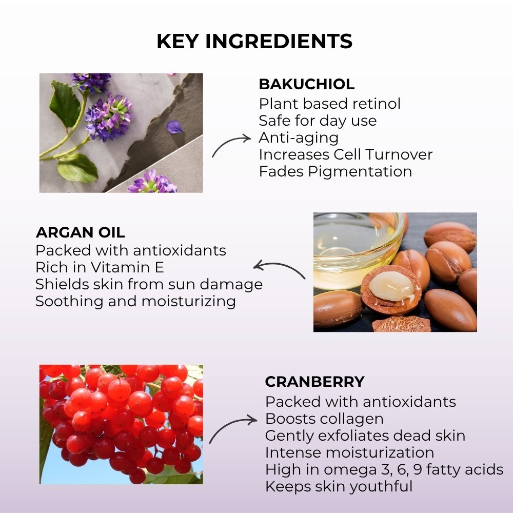 Ingredients: Cucumis sativus 3% (cucumber), Oleae europea 3% (phyto squalene from olive oil), Psoralea corylifolia 3% (bakuchiol oil), Daucus carota 2% (carrot), Persea americana 1% (avocado), Coffea arabica 1% (coffee). Other Ingredients: Hyaluronic acid, Lactic acid serum, Myristic acid, Decyl glucoside, TEA, Aqua