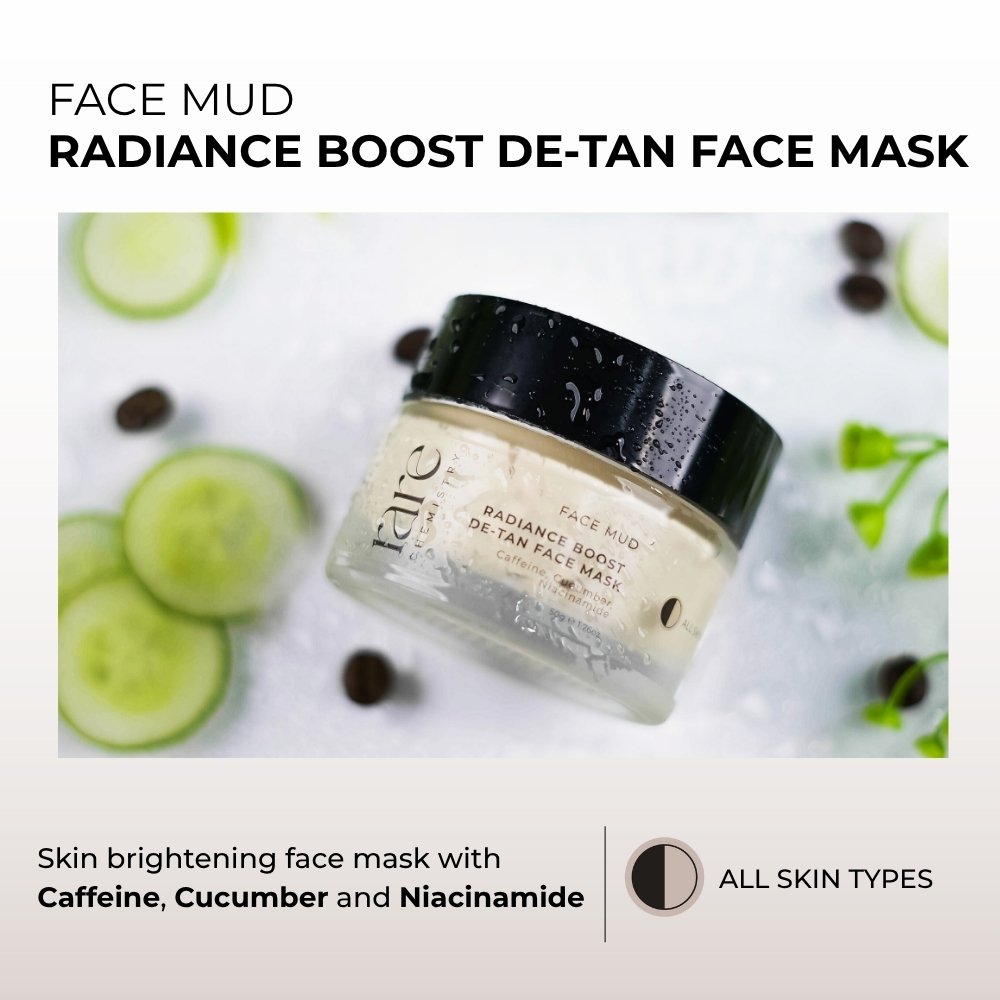 Radiance Boost De-Tan Face Mask - A potent de-tanning face mask targeted towards dull, blemish prone skin. Balanced blend of botanicals and actives clears pigmentation and evens out skin tone. Rejuvenates skin by boosting collagen production for brighter, glowing skin. Hassle-free quick drying formula can be used on the go for a luxurious skincare experience.