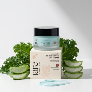 Discover the ultimate solution for sensitive skin with our Gentle Repair Day Cream that moisturizes, calms and restores the delicate epidermal barrier. This exquisite formula with antioxidant rich kale fight inflammation, promote collagen production along with aloe vera that reduces redness and irritation. Hyaluronic acid further adds to the goodness of this product by strengthening the skin’s natural lipid barrier for calm, smooth and healthy complexion.