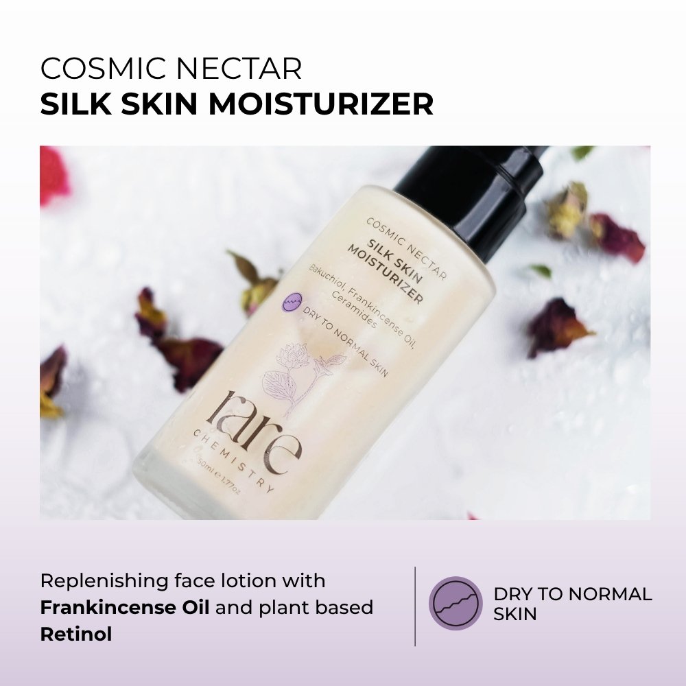 Silk Skin Moisturizer - Improves and maintains skin barrier. Tackles and fades hyper-pigmentation, redness and skin irregularities. Reverses oxidative damage and provides anti-ageing benefits. Leaves the skin with an overall calming effect.