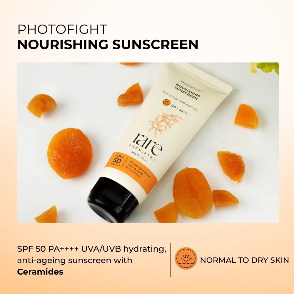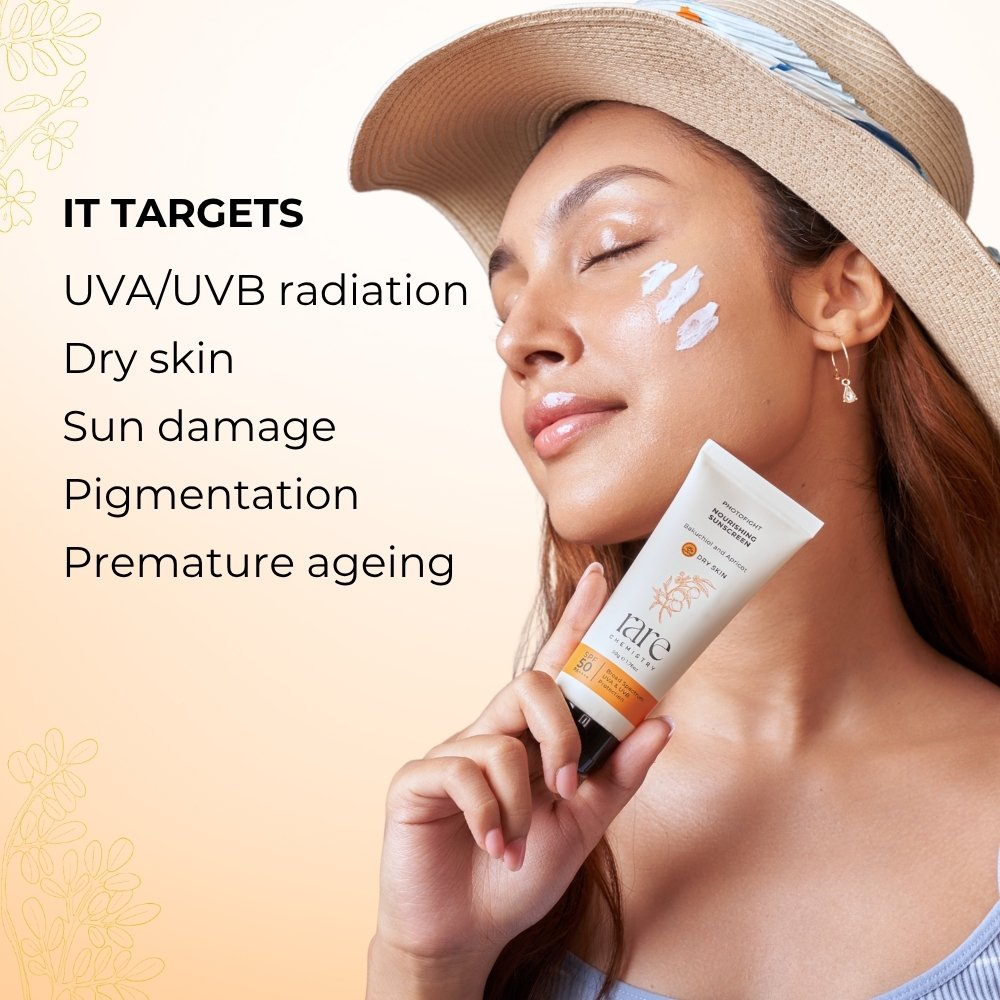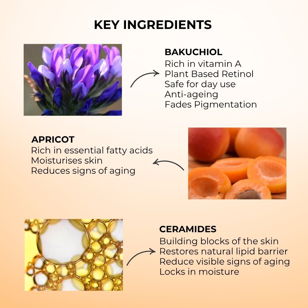 Protect your skin with our Nourishing Sunscreen – a broad spectrum sun protection with natural moisturizers and antioxidants. Along with shielding against UVA and UVB rays it is infused with bakuchiol and apricot to reduce pigmentation, boost skin hydration and collagen synthesis for even-toned radiant skin.