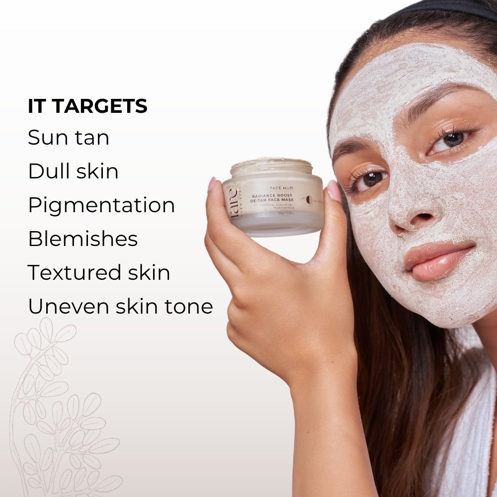 An indulgent pick-me-up for dull, blemish prone skin, our Radiance Boost De-Tanning Face Mask is a balanced blend of botanicals and actives. Infused with caffeine, cucumber and niacinamide, this mask clears pigmentation, evens out skin tone and boosts collagen production for healthy, radiant and rejuvenated skin.