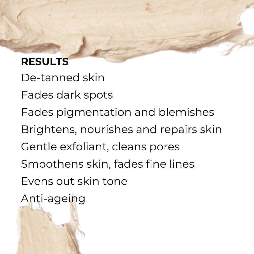 1. A potent de-tanning face mask targeted towards dull, blemish prone skin.