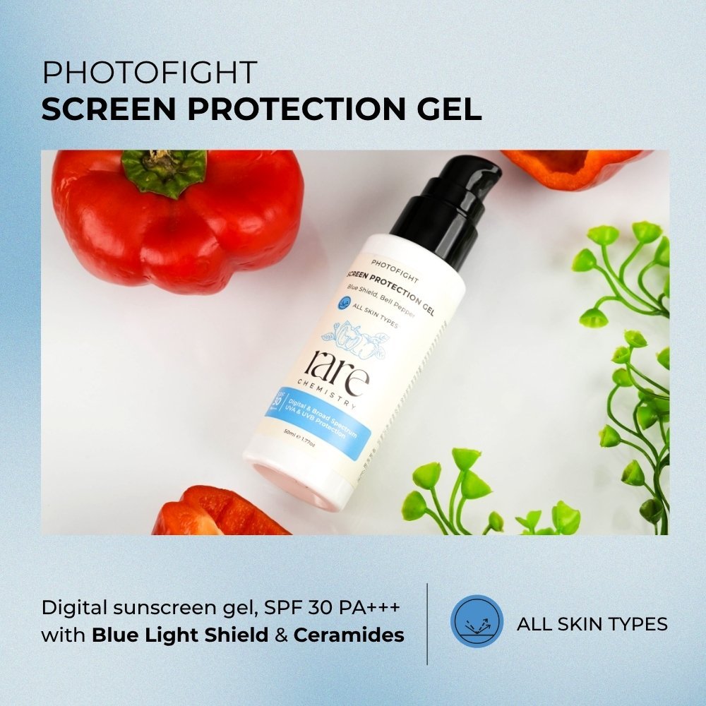 Rare Chemistry Screen Protection Gel a lightweight, non-greasy formula for all skin types, has blue light shield technology that combats the harmful effects of blue rays emitted from digital devices and LED sources. It helps prevent hyperpigmentation, stimulates callagen production and repair for brighter, firmer and healthier skin.